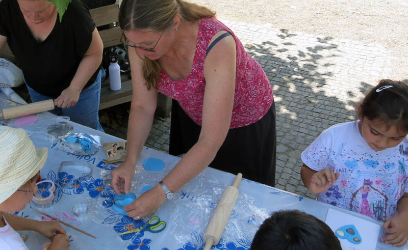 ca. 50 Kinder der Nibelungenschule um ihrer Kreativität freien Lauf zu lassen. Bei schönstem Wetter wurde gehämmert (Segelschiffchen bauen), gemalt (Masken, Stelen)