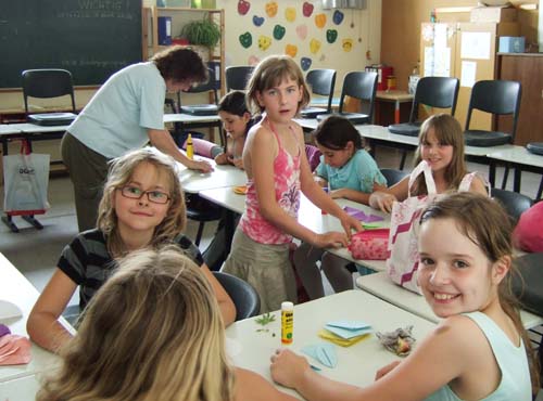Frau Fuchs schöpft aus ihrem reichen Erfahrungsschatz und zeigt den Kindern immer wieder neue Möglichkeiten auf, mit einfachen Mitteln gestalterisch tätig zu sein, um auf diese Weise innerhalb der 90 minütigen Bastel-AG ein fertiges Werk mit nach Hause nehmen zu können,