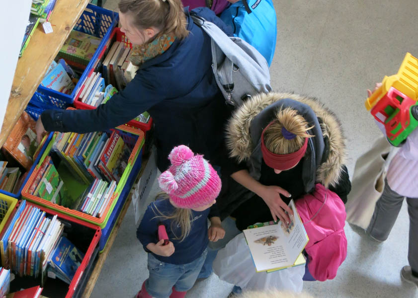 Wieder konnten sich viele Kaufinteressenten an gut sortierten Auslagen von Preis und Qualität der in Kommission angebotenen Ware überzeugen. Dies spiegelte sich auch im Umsatz wieder, denn über 41 Prozent der Kinderkleider und Spielsachen wechselten am Verkaufstag den Besitzer. Den Förderverein freut's, kann er doch mit den Einnahmen wieder einiges für die Grundschulkinder bewegen. |