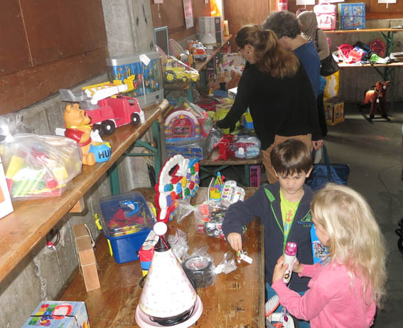 38. Basar in der Auktionshalle am 18. Okt. 2014Bei schönem Wetter besuchten wieder zahlreiche Interessenten den Kinderkleider- und Spielzeugbasar des Fördervereins. Sie konnten sich an den gut sortierten Ständen mit günstigen Artikeln für die Wintersaison eindecken. Hierzu gehörten auch viele Spiele und Kuscheltiere. |