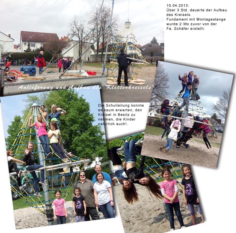 Aufbau des Kletterkreisels am 10.04.13: Förderverein, Elternbeirat und Kreis-GG ermöglichten die Installation dieses neuen Spielgerätes. ![]() |